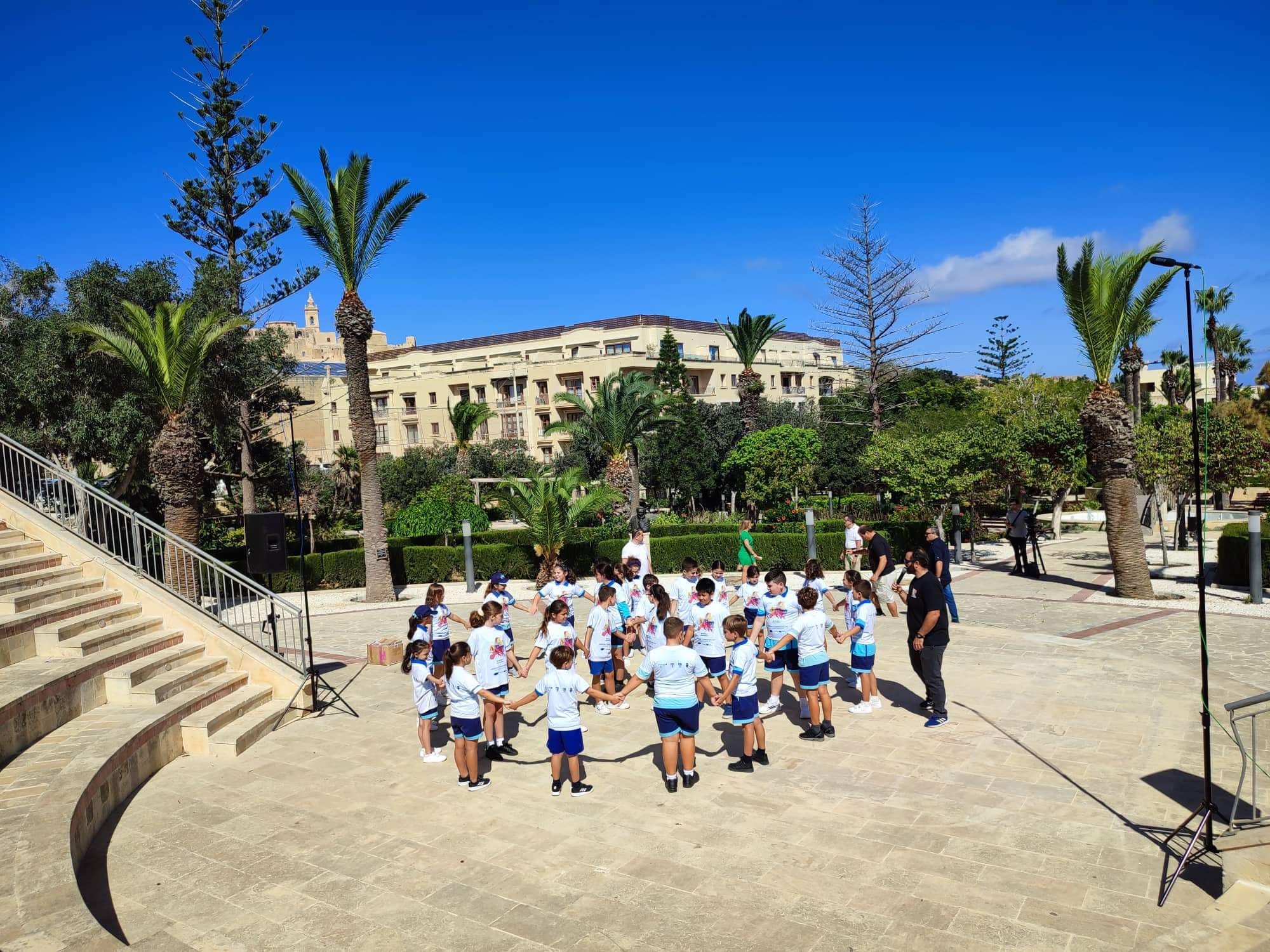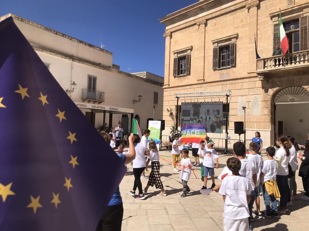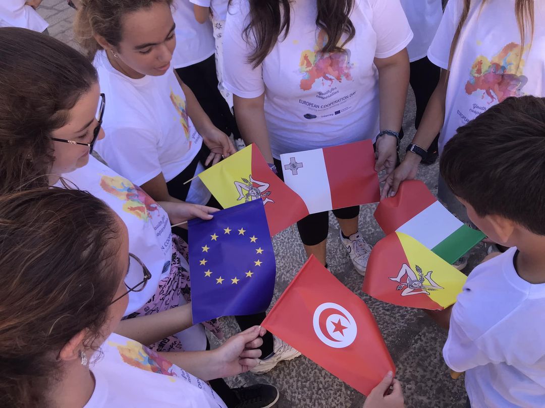 The initiative involved hundreds of young people, many flags, choreographies, colors, languages, stories and traditions to launch a unique message of cooperation between peoples, in a succession of relay dances between Favignana, Palermo, Ustica and Gozo (Malta).
